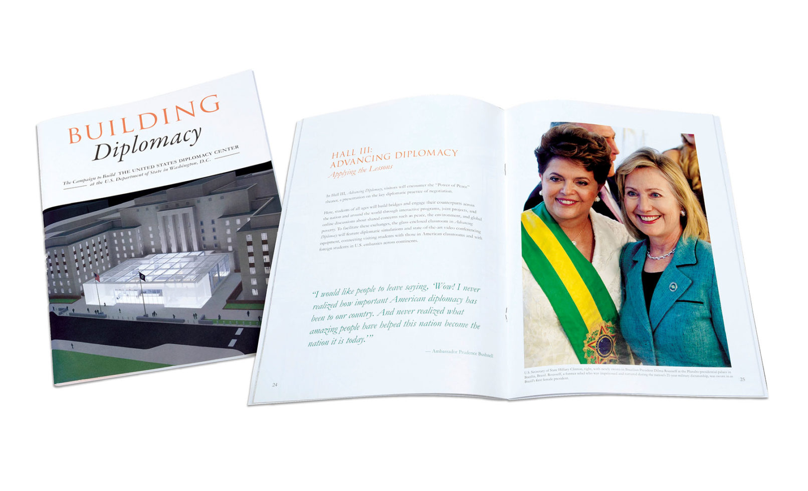We had the privilege of working with the Department of State on a logo and capital campaign materials for the US Diplomacy Center in Washington DC.